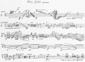 Find here some excerpts of my compositions. You are welcome to get back with questions. These compositions are designed for players that take full creative responsibility no matter how determined the notation might seem. There is much more, the list will be completed sometime. Click on pictures to enlarge them.